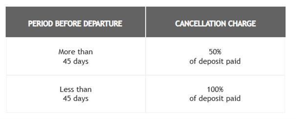 8) ln the event you cancel your confirmed booking, it can only be accepted if it is in writing from the person who signed the booking form, and the following cancellation charges will apply: